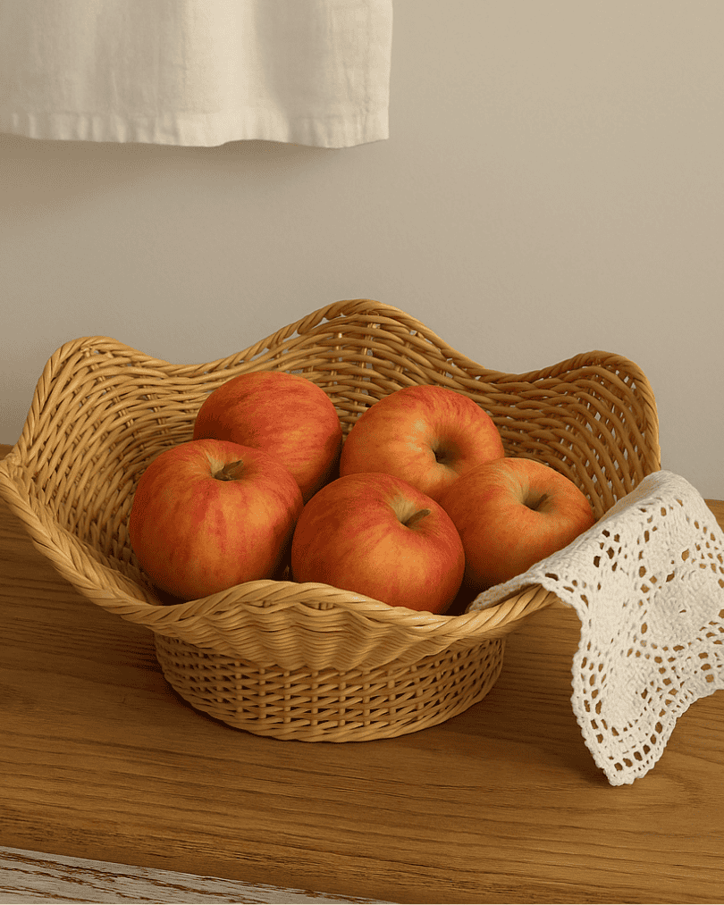 The Makü Wave Bowl is crafted by hand using natural palm fibers, featuring an elegant open weave and undulating wave-shaped edges. Its organic silhouette makes it a versatile piece — perfect for serving fruits, holding essentials, or simply as a centerpiece that elevates any space. Each bowl is a unique expression of Makü’s artisanal identity.